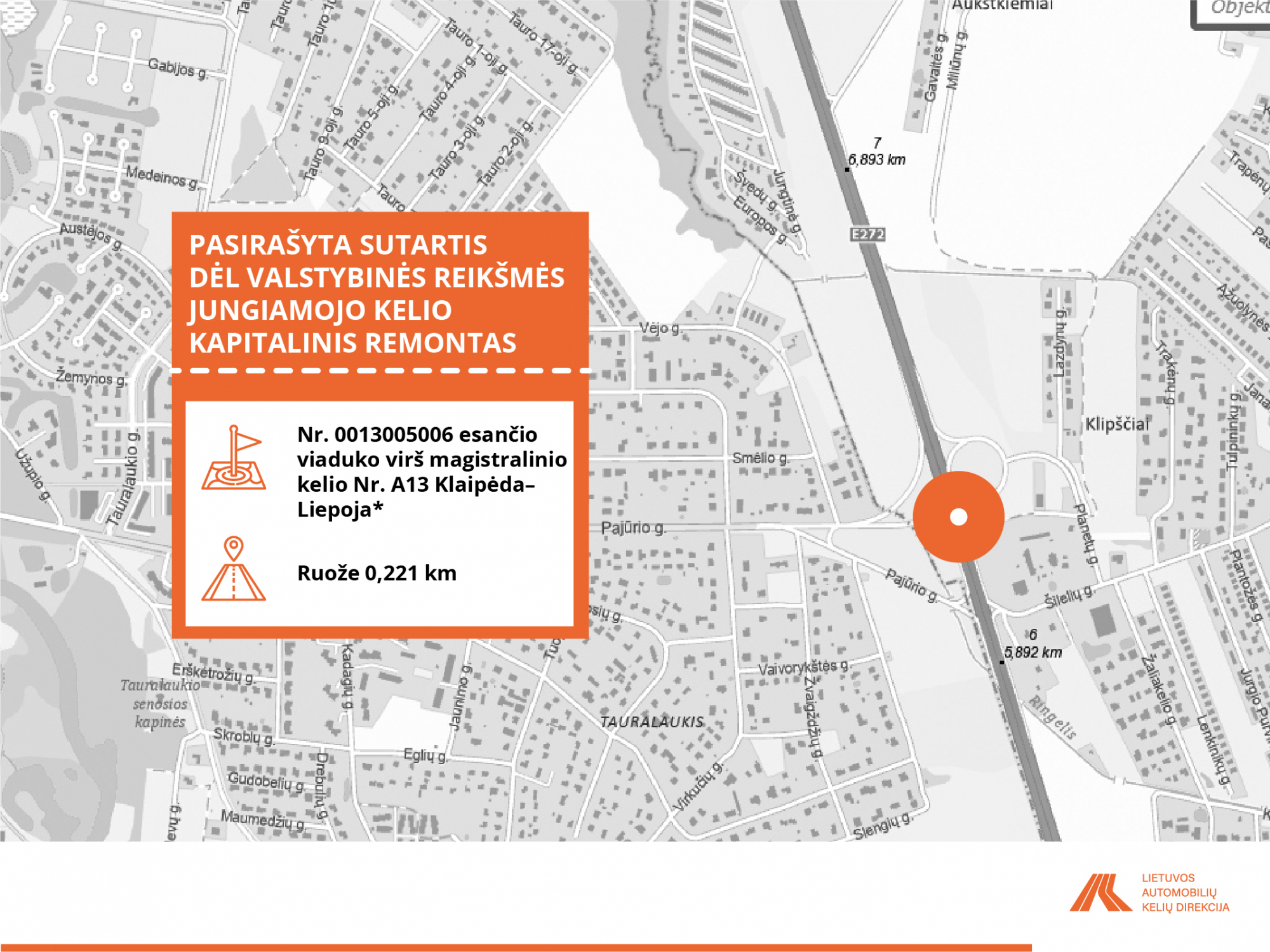 • Jungiamasis kelias (Nr. 0013005006) 0,221 km viaduko virš magistralinio kelio A13 Klaipėda–Liepoja;