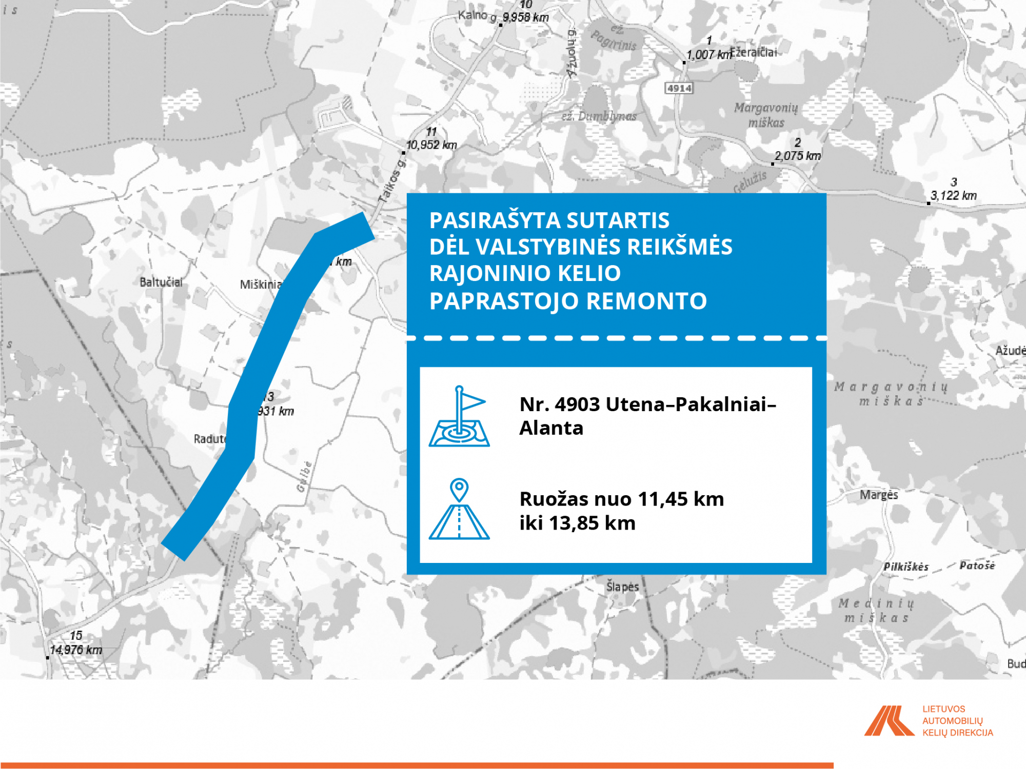 • Nr. 4903 Utena–Pakalniai–Alanta, ruožas nuo 11,45 iki 13,85 km.