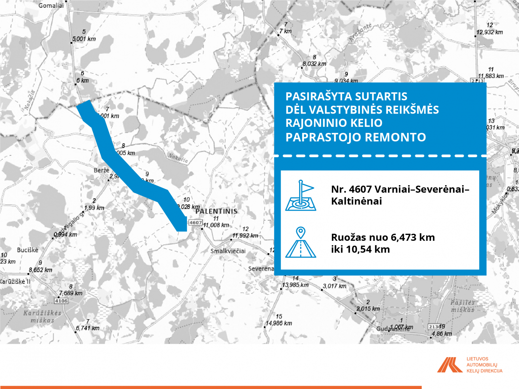 • Nr. 4607 Varniai–Severėnai–Kaltinėnai, ruožas nuo 6,473 iki 10,54 km;