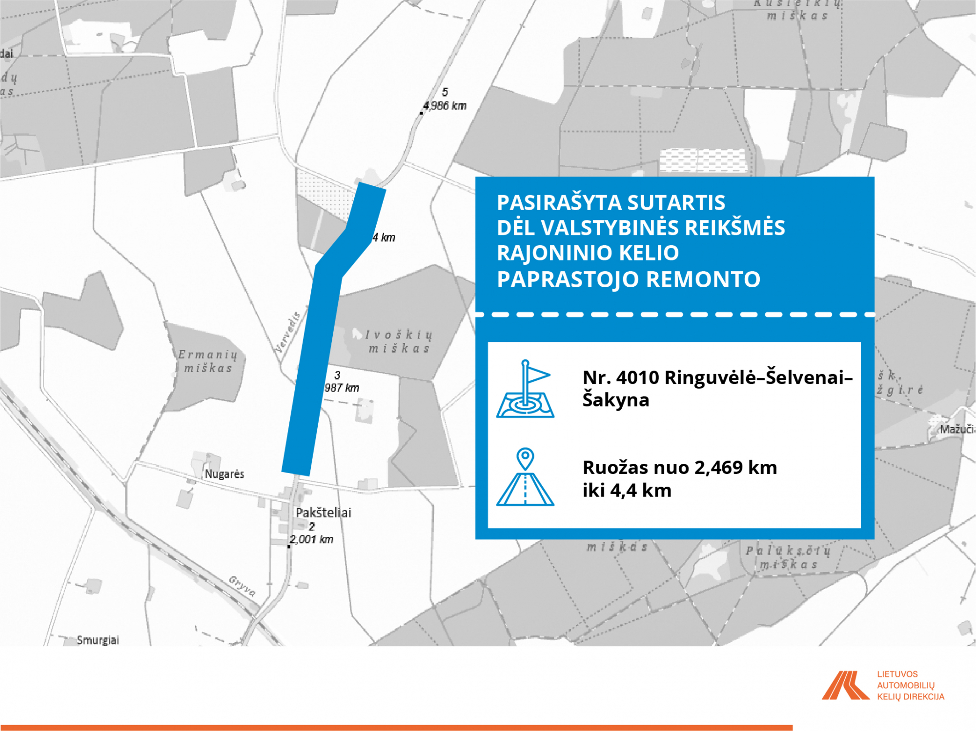 • Nr. 4010 Ringuvėlė–Šelvenai–Šakyna, ruožas nuo 2,469 iki 4,4 km;