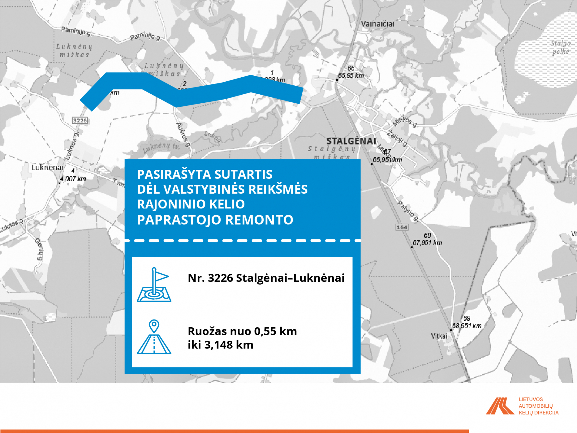 • Nr. 3226 Stalgėnai–Luknėnai, ruožas nuo 0,55 iki 3,148 km;