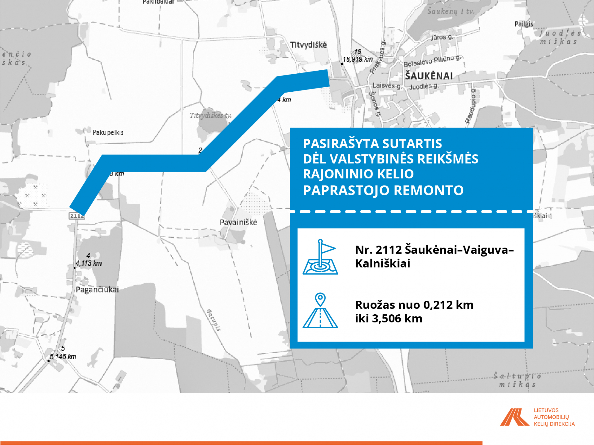• Nr. 2112 Šaukėnai–Vaiguva–Kalniškiai, ruožas nuo 0,212 iki 3,506 km;