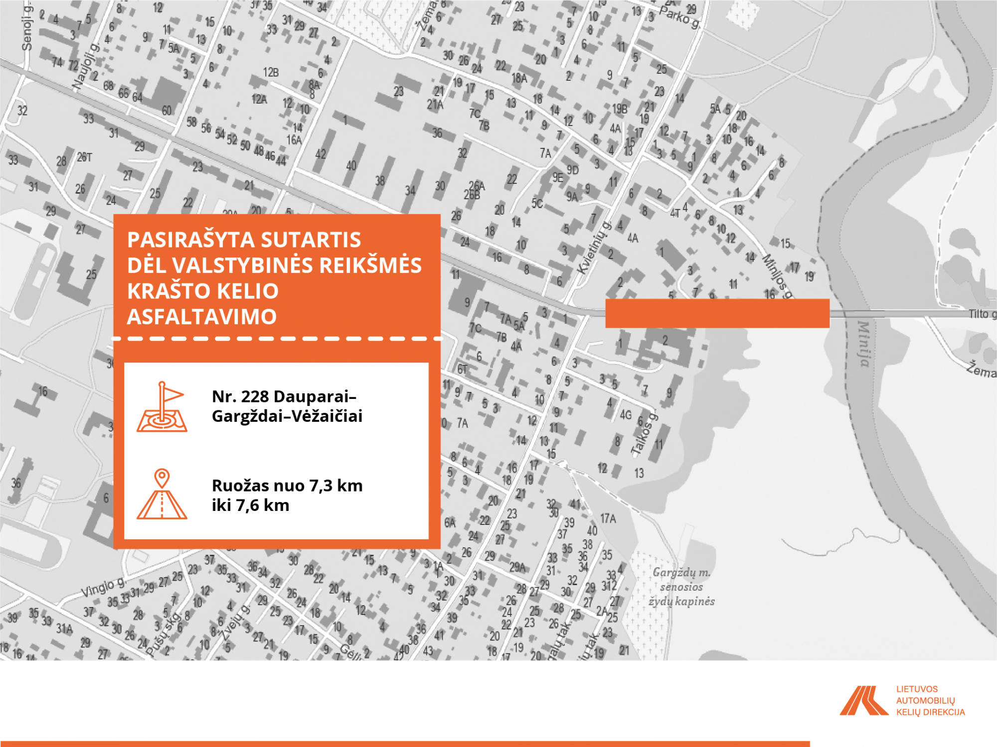 • Nr. 228 Dauparai–Gargždai–Vėžaičiai ruožas nuo 7,300 iki 7,600 km.