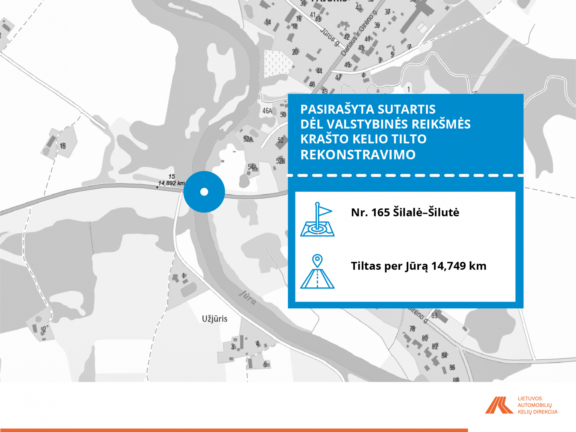 • Nr. 165 Šilalė–Šilutė 14,749 km tiltas per Jūrą;