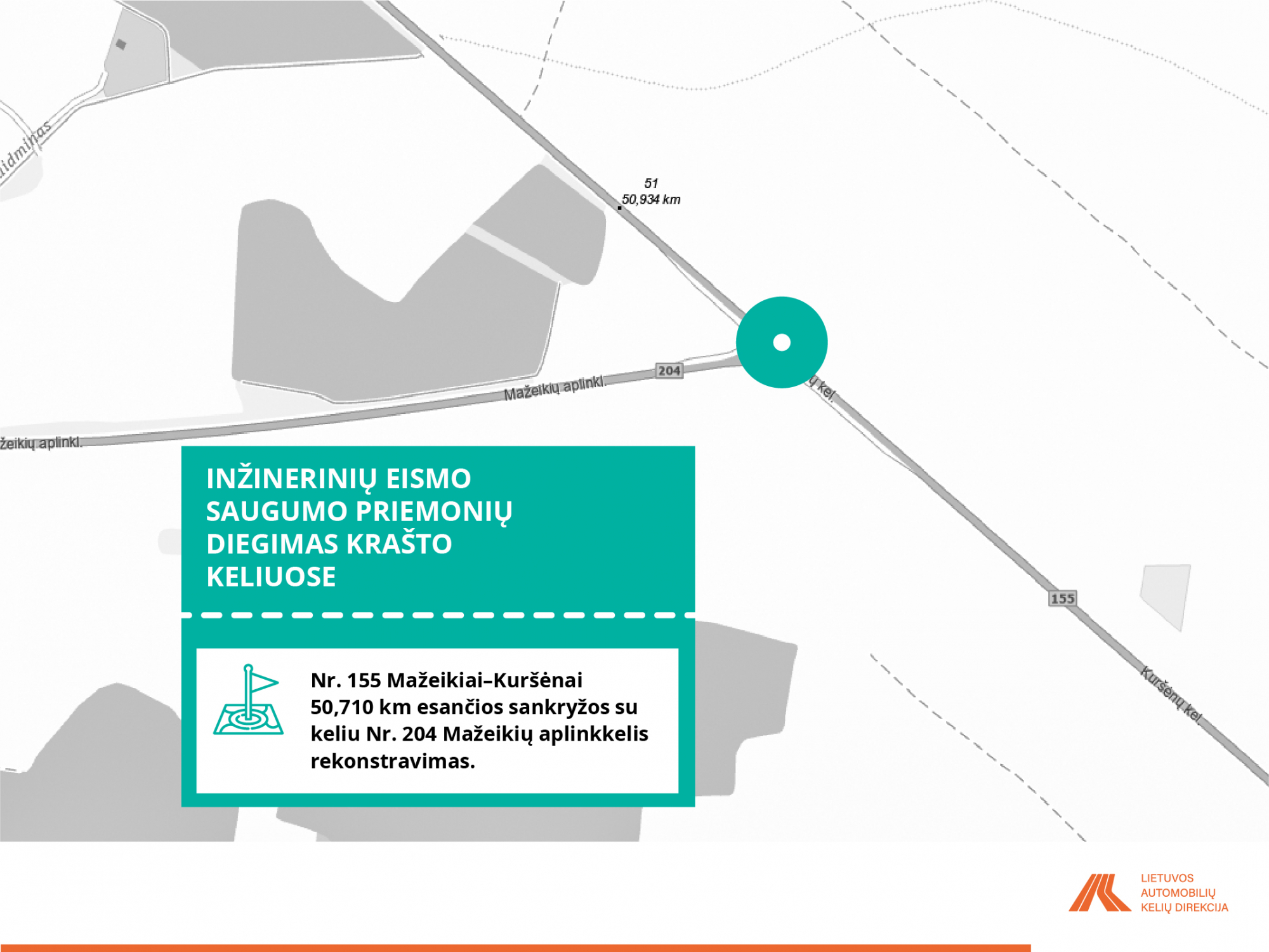 • Valstybinės reikšmės krašto kelio Nr. 155 Mažeikiai–Kuršėnai 50,710 km esančios sankryžos su keliu Nr. 204 Mažeikių aplinkkelis rekonstravimas.