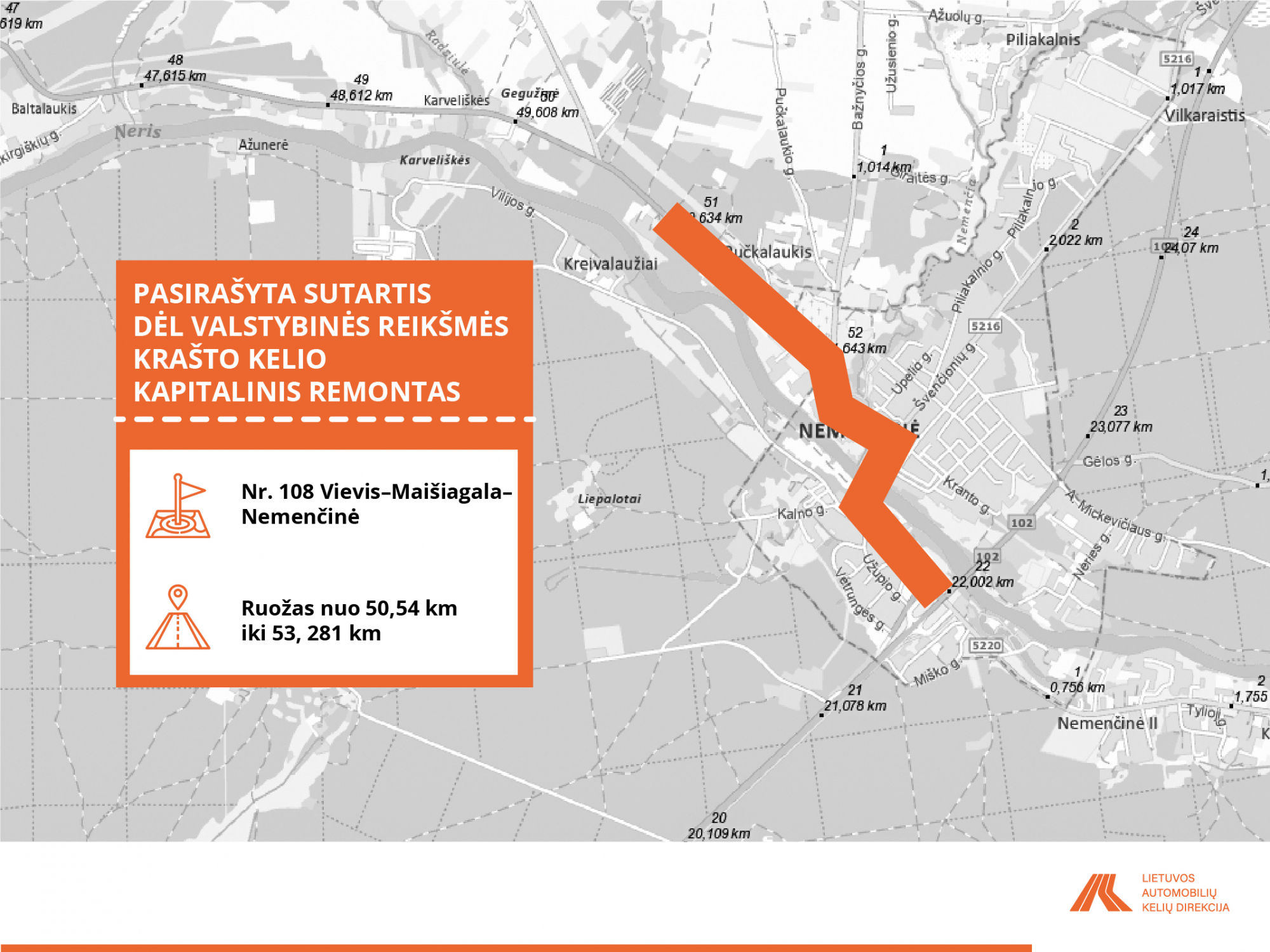 • Nr. 108 Vievis–Maišiagala–Nemenčinė ruožas nuo 50,540 iki 53, 281 km;