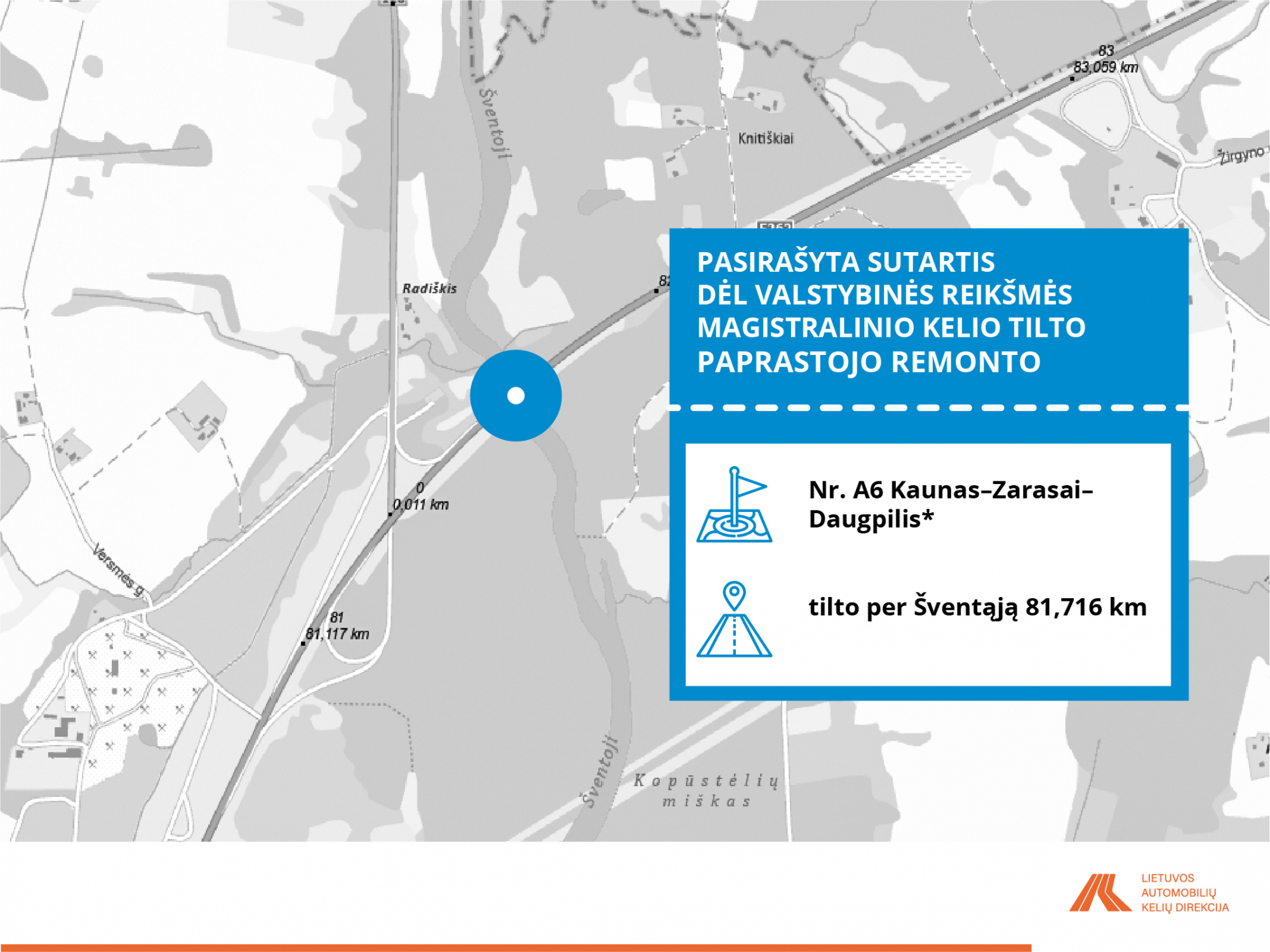 VĮ Lietuvos automobilių kelių direkcija su rangovais sudarė 25 darbų sutartis, pagal kurias planuojama įgyvendinti valstybinės reikšmės kelių kapitalinio ir paprastojo remonto, žvyrkelių asfaltavimo, sankryžų rekonstravimo darbus. Iš visų sutarčių – 11 tiltų paprastojo remonto ir rekonstravimo darbų sutartys.