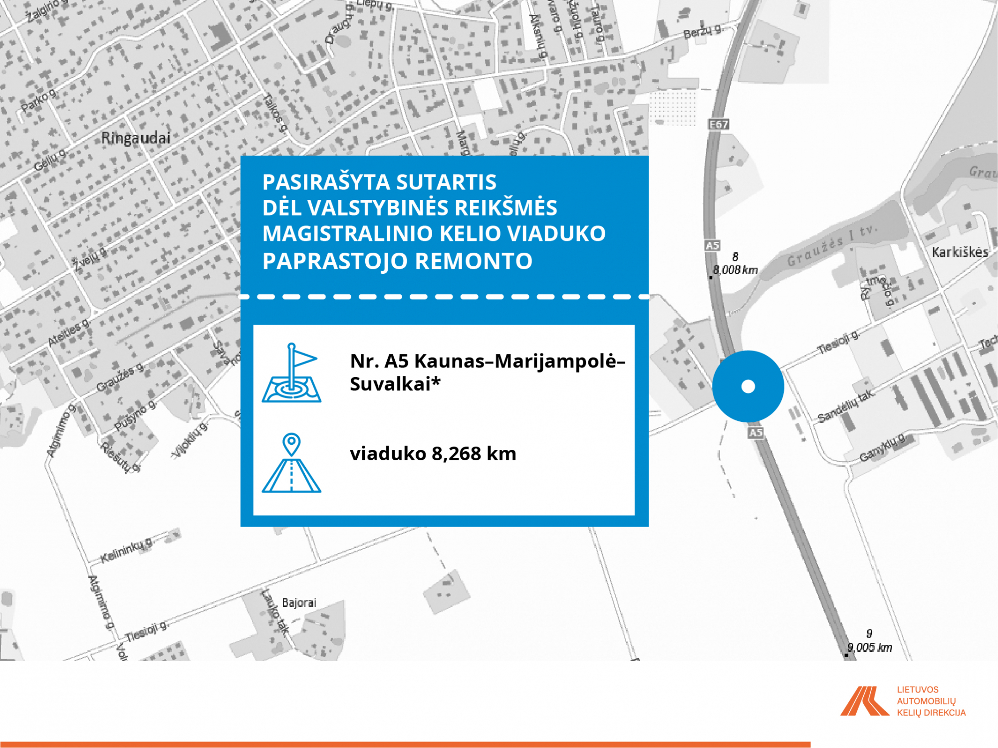 • A5 Kaunas–Marijampolė–Suvalkai* viadukas 8,268 km;