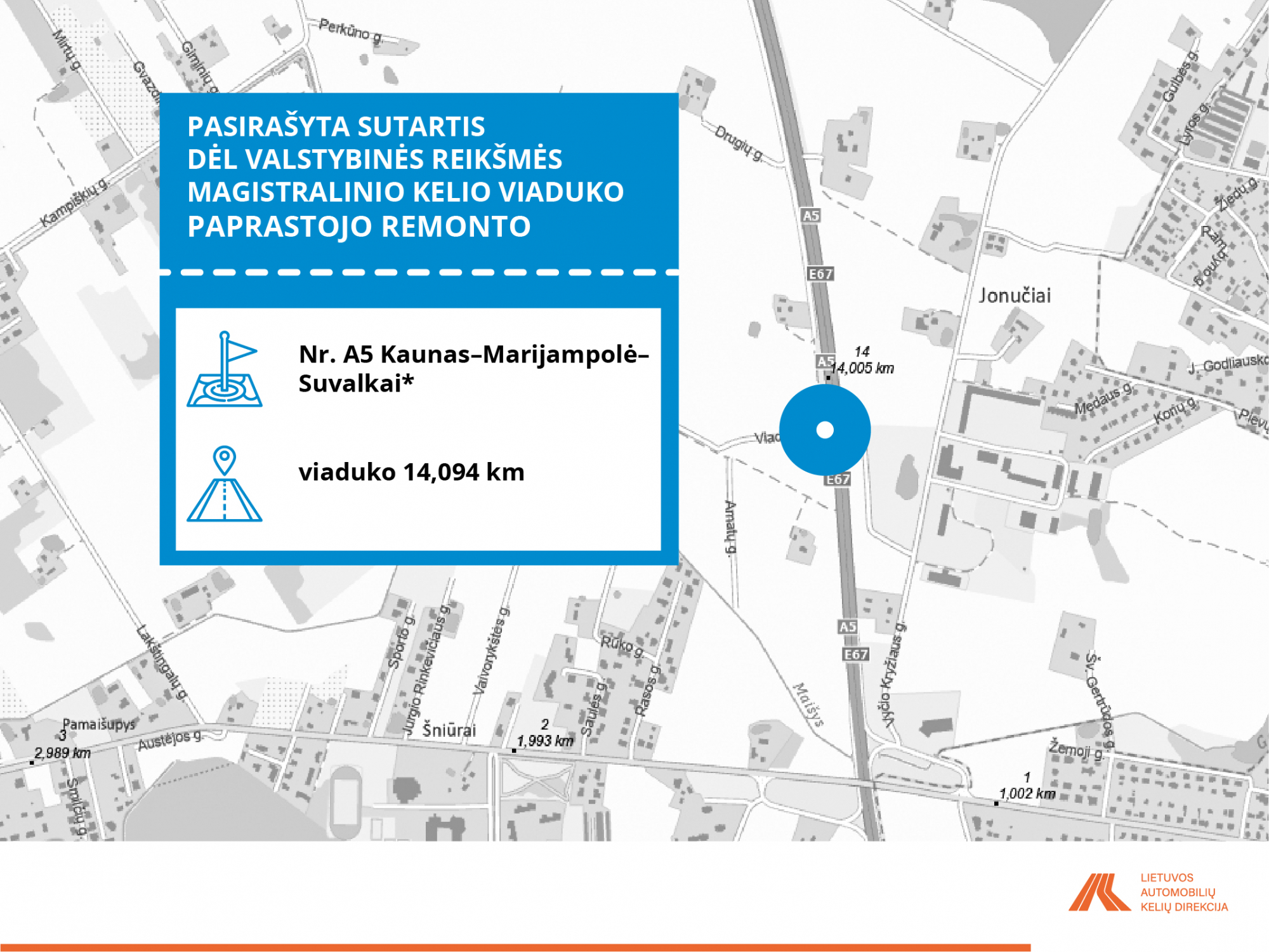 • A5 Kaunas–Marijampolė–Suvalkai* viadukas 14,094 km;