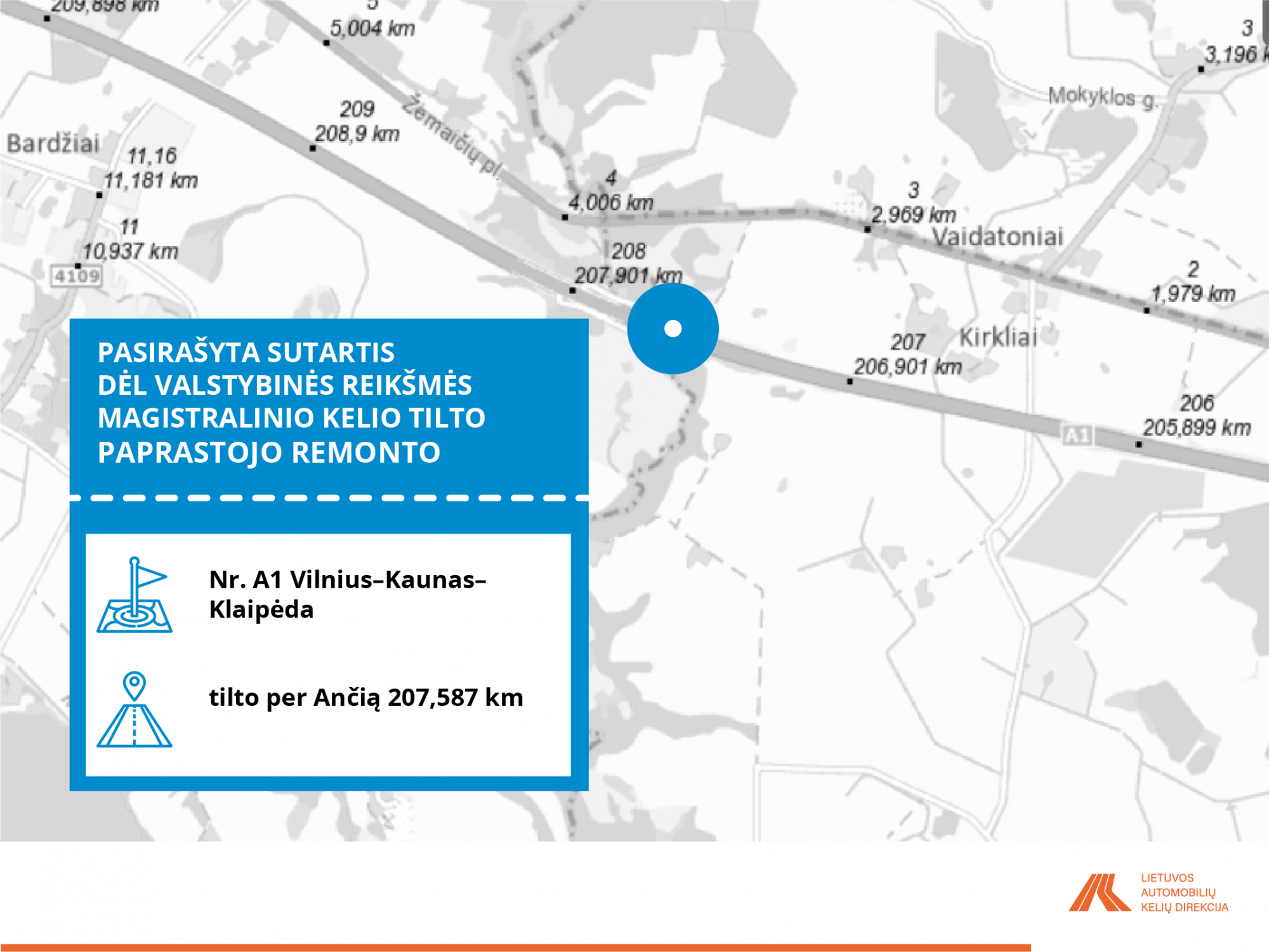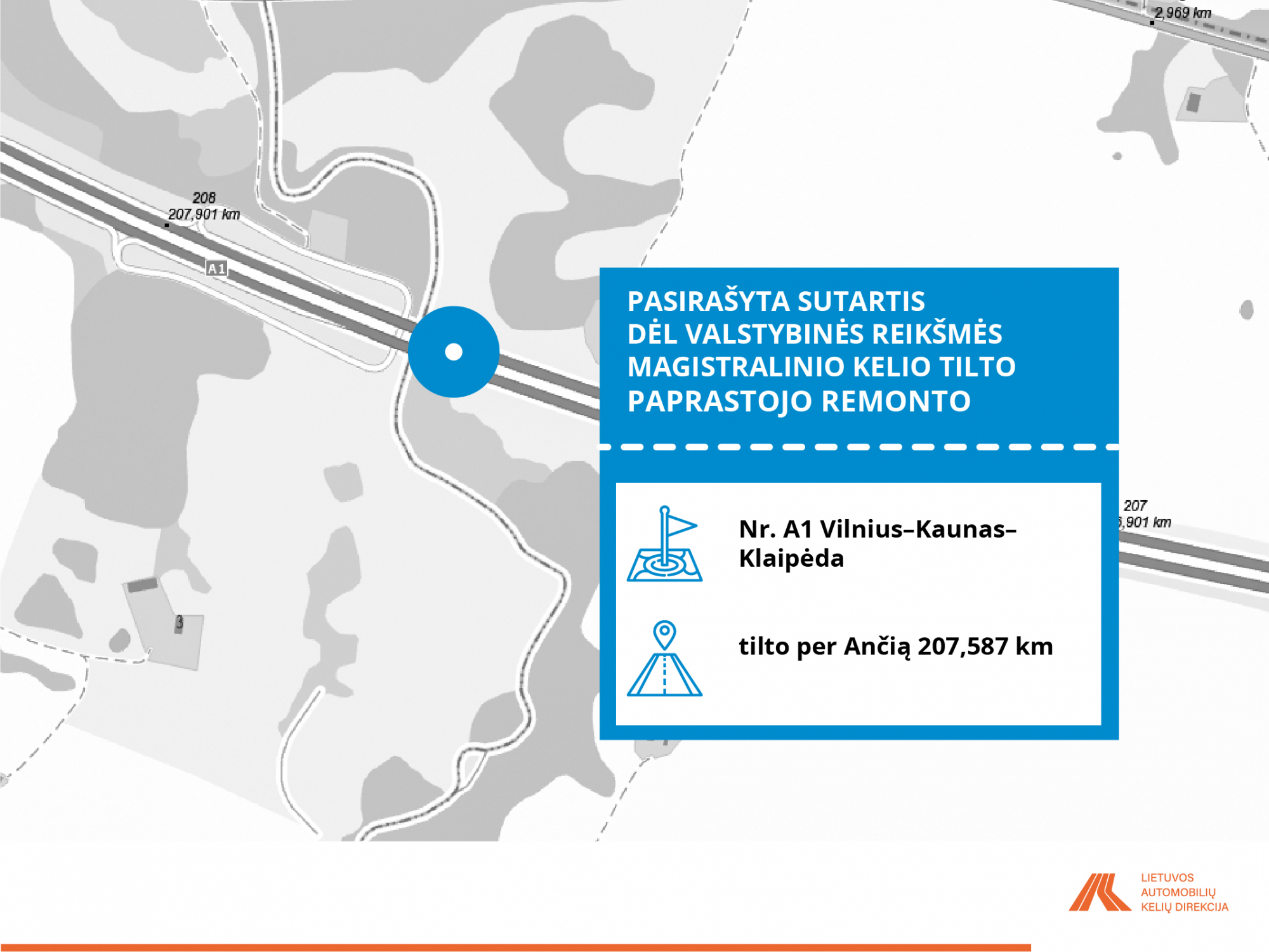 • A1 Vilnius–Kaunas–Klaipėda tiltas per Ančią 207,587 km;