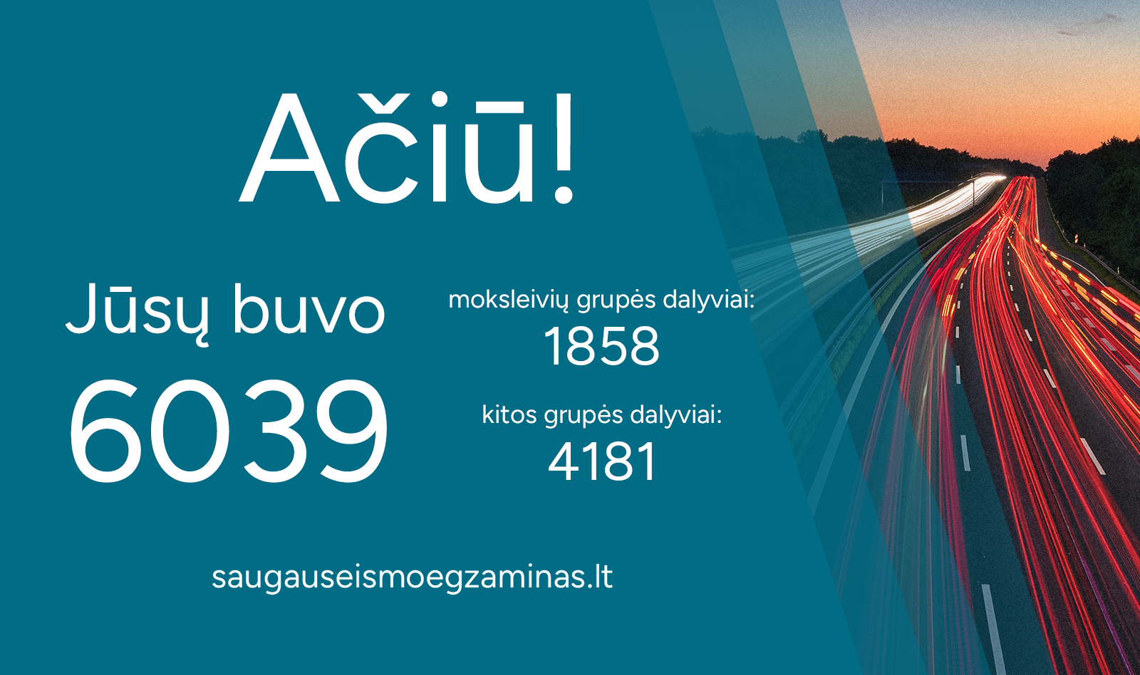 „Pirmą kartą surengtas visuotinis saugaus eismo egzaminas patvirtino, kad visuomenė ne tik domisi šia tema, bet ir yra pasirengusi aktyviai prisidėti prie saugesnės eismo aplinkos kūrimo. Siekiame, kad Lietuvos keliuose nežūtų nė vienas žmogus – tai ambicingas, bet būtinas tikslas, kurį galime pasiekti tik visi kartu, sąmoningai laikydamiesi eismo taisyklių. Žinios, pagarba kitam ir atsakingas elgesys – tai kertiniai saugaus eismo principai. Dėkojame tūkstančiams žmonių, kurie skyrė laiko įsivertinti savo žinias, tai – svarbus žingsnis saugesnių kelionių link“, – teigia „Via Lietuva“ generalinis direktorius ir saugaus eismo egzamino komisijos pirmininkas Martynas Gedaminskas.
